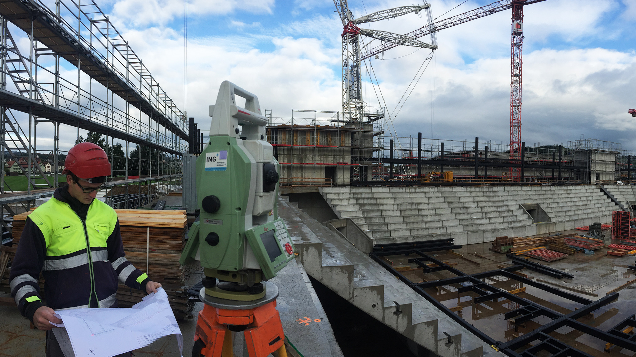 ING PLUS hat beim Sport- und Gesundheitspark WIN4 ein Baustellenfixpunknetz eingerichtet, präzise Absteckungsarbeiten ausgeführt, das Aushubdepot gescannt und ein exaktes Massenmanagement erstellt.